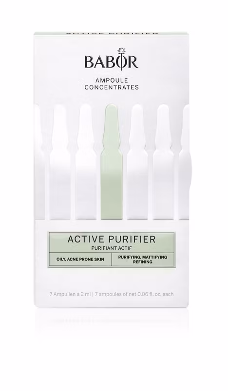 Active Purifier er en engangsdose med aktivt konsentrat – fullpakket med småmolekylære ingredienser. Første hjelpen til fet hud og hud med akne. Skifferolje og tee tree-olje hemmer bakterievekst og hjelper repareringsprosessen av akne og sørger for at inflammasjoner forsvinner raskere. Effektiv mot all type av akne og forebygger fremkomsten av nye blemmer og urenheter.